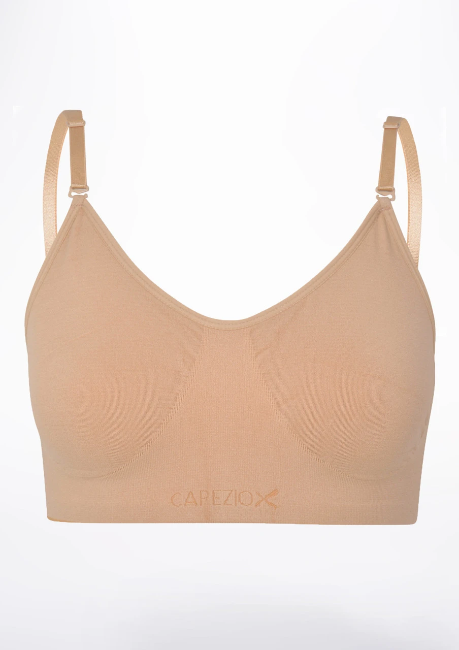 This bra from Capezio has been especially designed to be worn underneath a leotard.