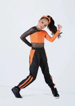 -Two piece, includes leotard and jogger pants