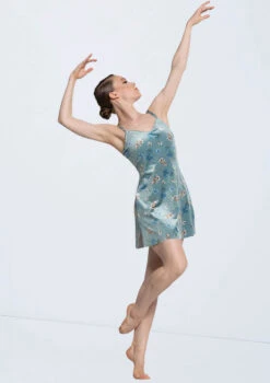 -Floral print stretch velvet slip dress