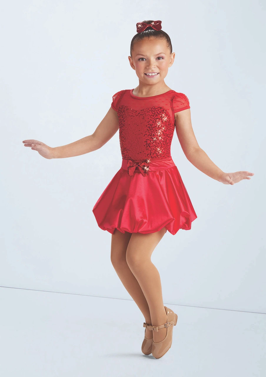 Three piece costume includes biketard, tutu and bubble skirt